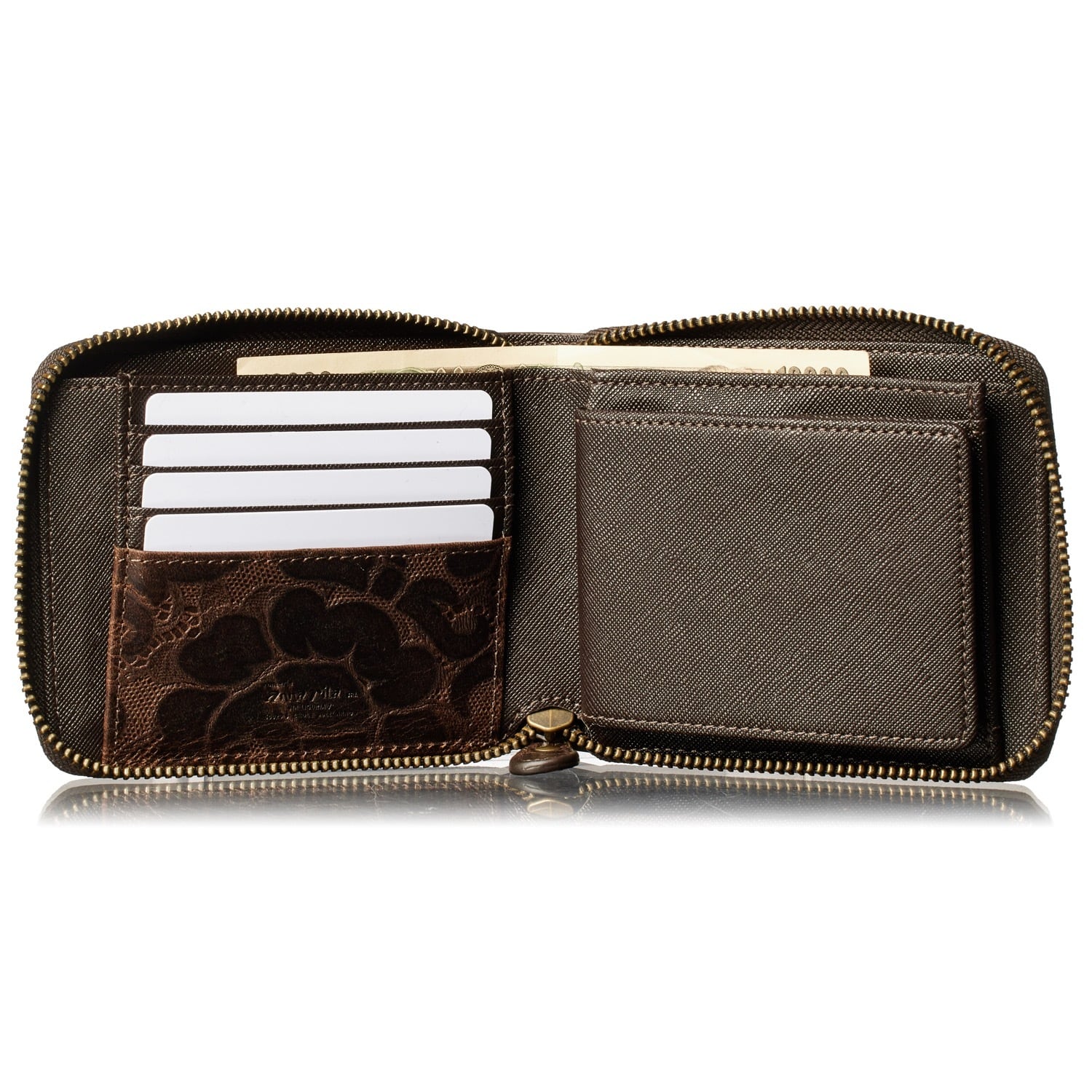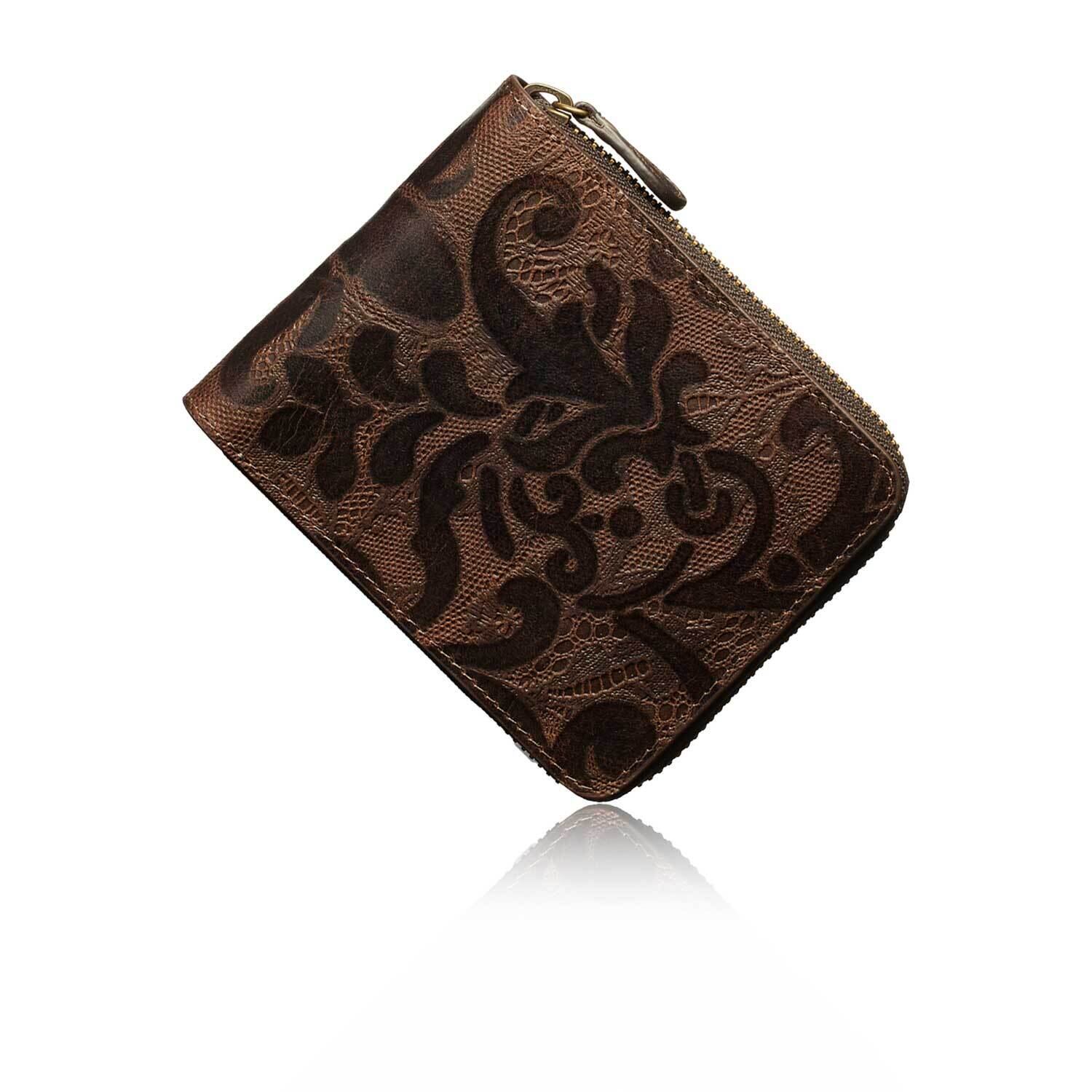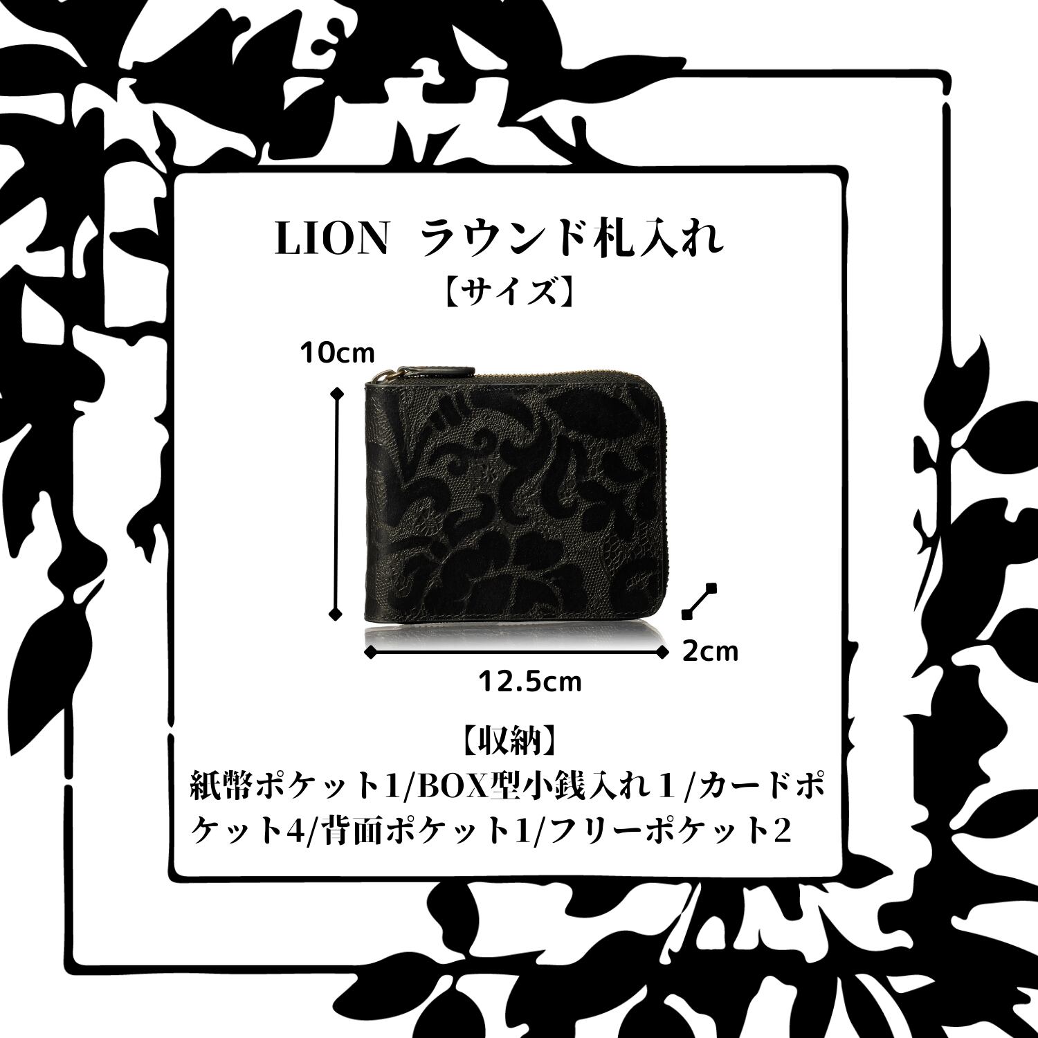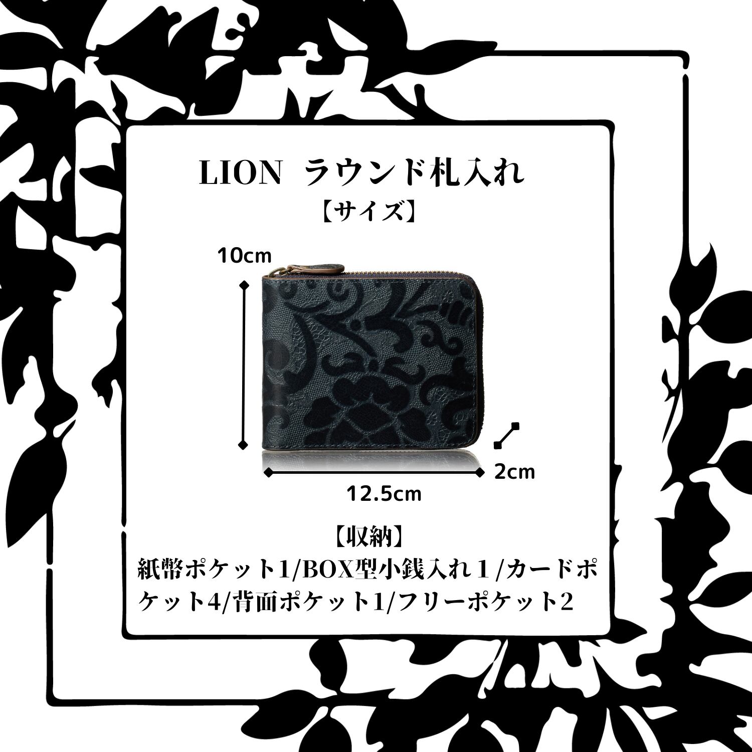 [VOICE] イタリア anna rita社製 牛革 Lion 財布 メンズ レディース 二つ折り 『技あり』厚くならない ラウンドファスナー 使いやすい BOX型小銭入 上品な 伝統 花柄 型押し ギフト 箱入り