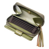多くのお客様のご要望を参考に、小さいながら収納力は抜群!ベルトのスナップを開けると、カード入れが。また、反対側のファスナーを開けると、カードポケットと小銭入れが! せっかちさんからのご要望。ベルトを外さずにファスナーが開けます。小銭だけ、カードだけ出したいときにもストレスフリーで使えます。 お札の大きさにくり抜いた札入れ部分は、厚みを削るとともに軽量化も実現。片側が開いているため、お札をササっと取り出せお会計時にもたつきません。